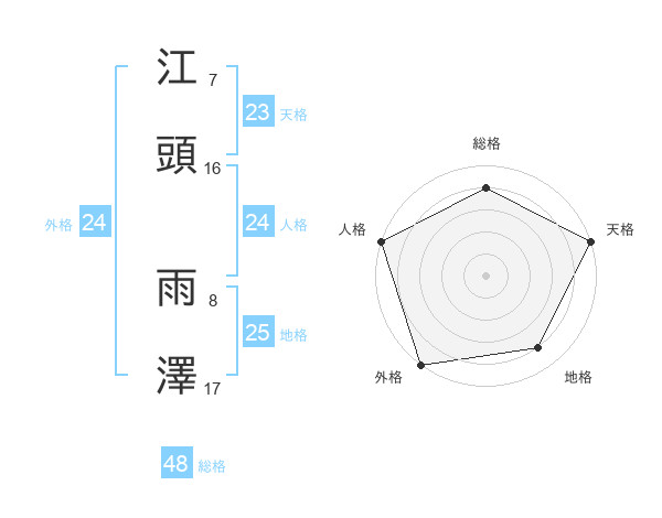江頭 雨澤さんを姓名の画数から五運を鑑定
