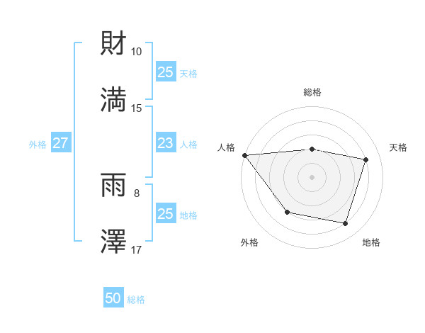 財満 雨澤さんの総格は50画の2点!