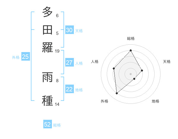 多田羅 雨種さんを姓名の画数から五運を鑑定