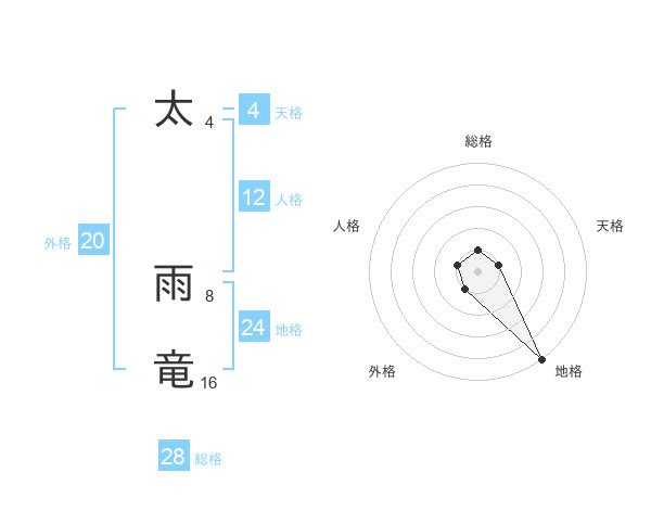 太 雨竜さんの総格は28画の1点!