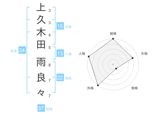 上久木田 雨良々さんを姓名の画数から五運を鑑定
