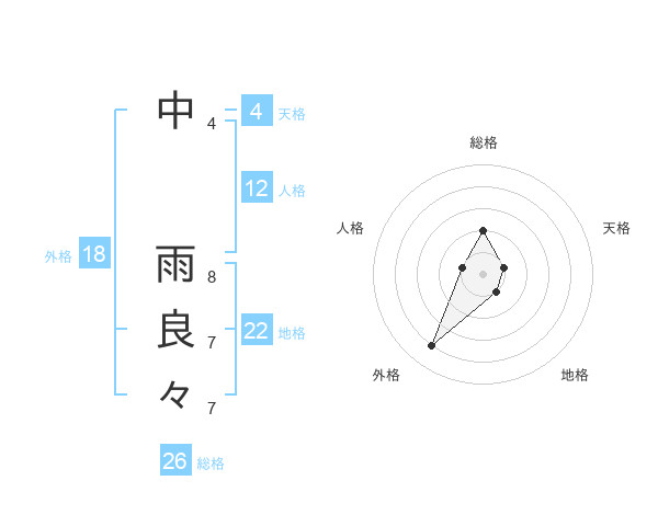中 雨良々さんの外格は18画の4点!