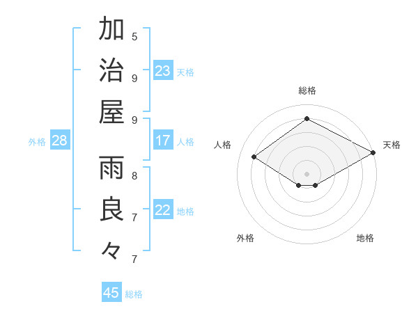加治屋 雨良々さんの天格は23画の5点