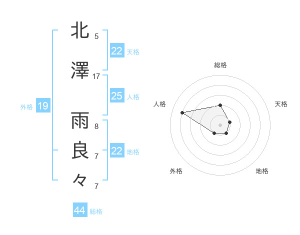 北澤 雨良々さんの総格は44画の2点!