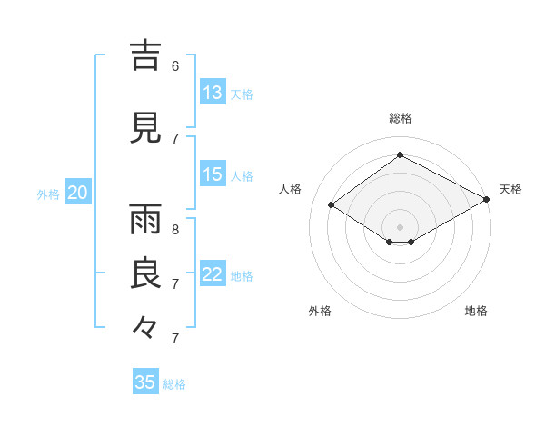 吉見 雨良々さんを姓名の画数から五運を鑑定