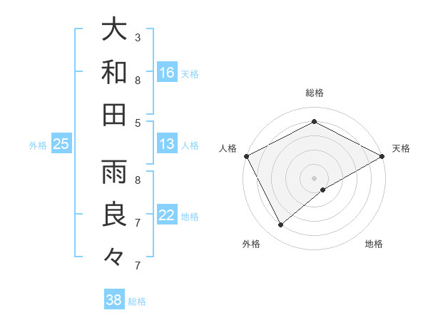 大和田 雨良々さんを姓名の画数から五運を鑑定