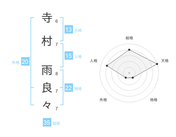 寺村 雨良々さんを姓名の画数から五運を鑑定