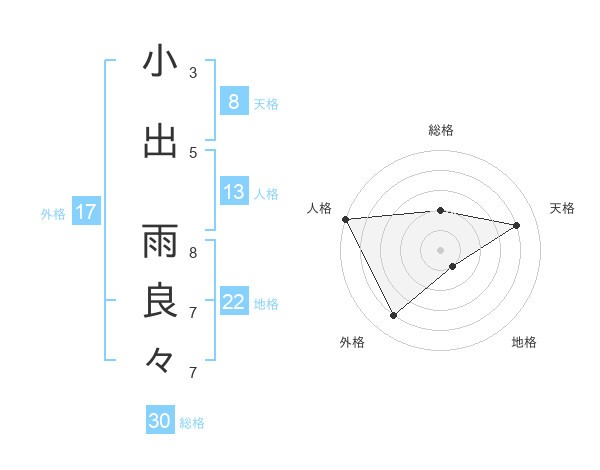 小出 雨良々さんを姓名の画数から五運を鑑定