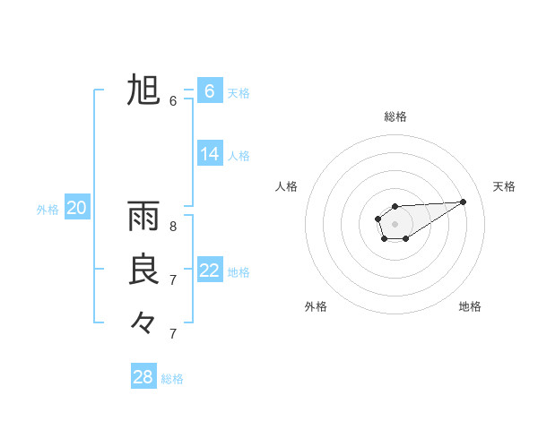 旭 雨良々さんの総格は28画の1点!