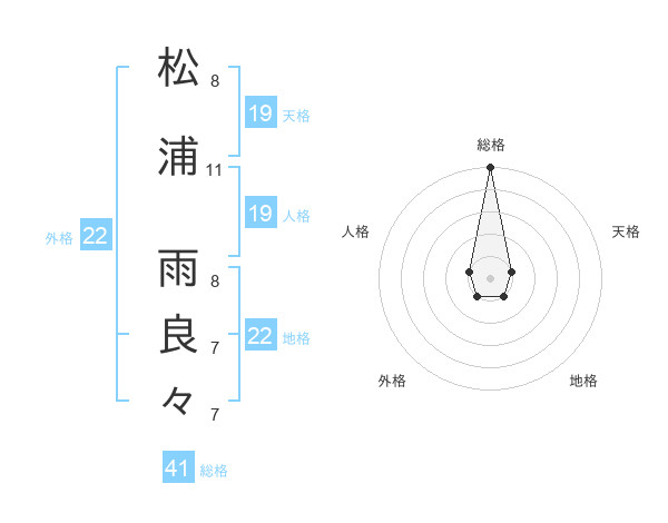 松浦 雨良々さんを姓名の画数から五運を鑑定