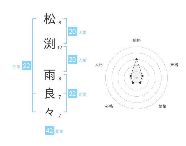 松渕 雨良々さんを姓名の画数から五運を鑑定