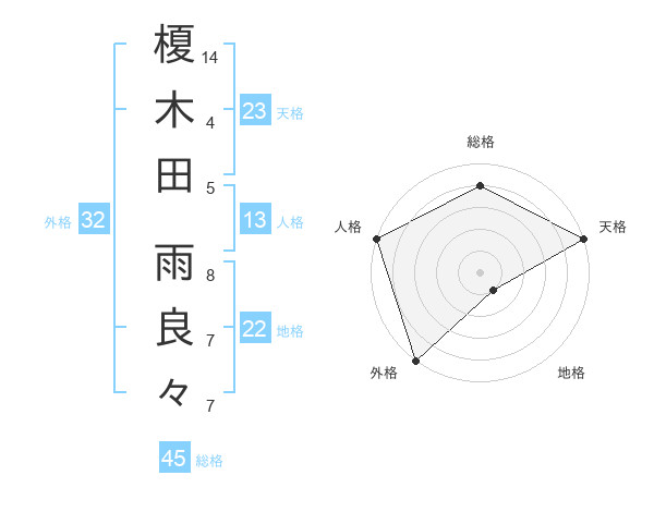 榎木田 雨良々さんを姓名の画数から五運を鑑定