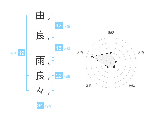 由良 雨良々さんを姓名の画数から五運を鑑定