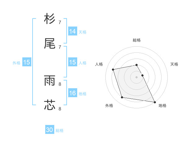 杉尾 雨芯さんの外格は15画の4点!
