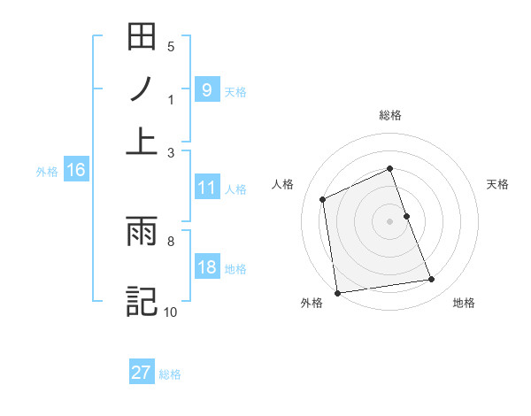 田ノ上 雨記さんの総格は27画の3点!