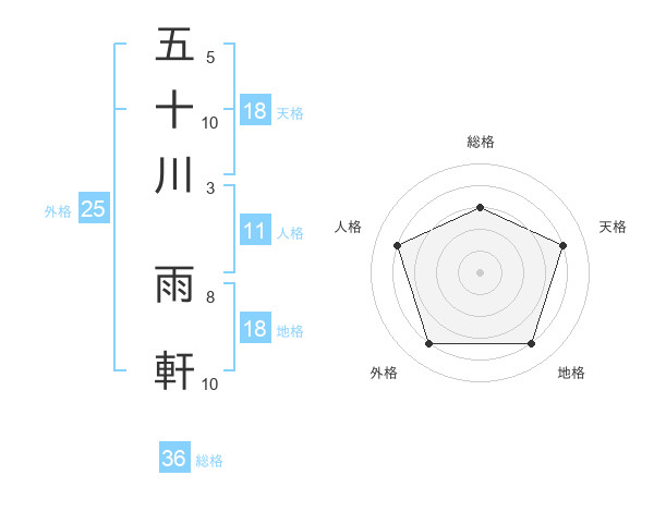 五十川 雨軒さんを姓名の画数から五運を鑑定