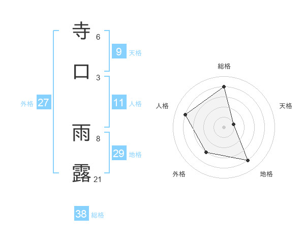 寺口 雨露さんを姓名の画数から五運を鑑定