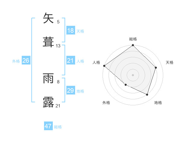 矢葺 雨露さんを姓名の画数から五運を鑑定