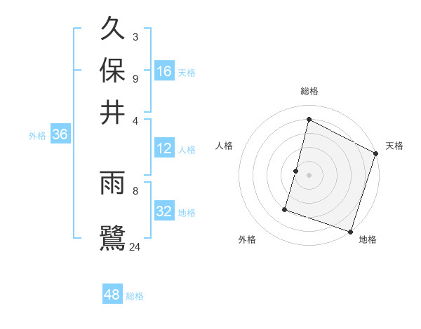 久保井 雨鷺さんの総格は48画の4点!