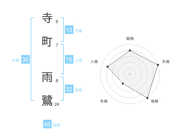 寺町 雨鷺さんの総格は45画の4点!