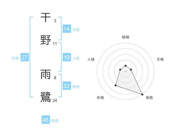 干野 雨鷺さんの外格は27画の3点!