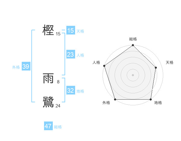 樫 雨鷺さんの総格は47画の5点!