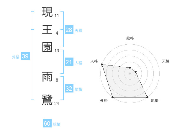 現王園 雨鷺さんを姓名の画数から五運を鑑定