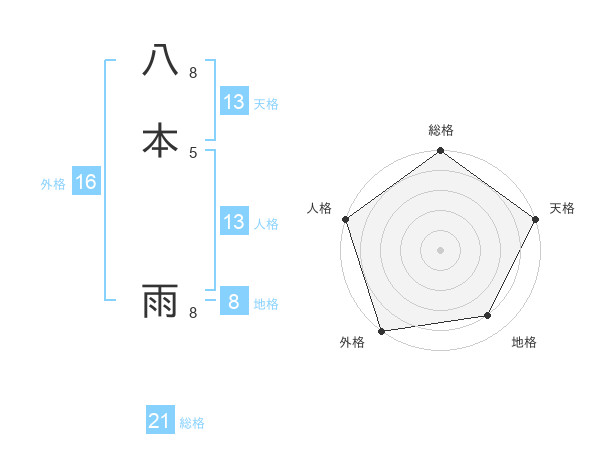 八本 雨さんの総格は21画の5点!