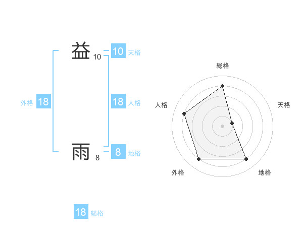 益 雨さんの総格は18画の4点!
