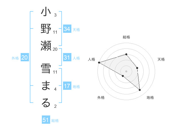 小野瀬 雪まるさんを姓名の画数から五運を鑑定