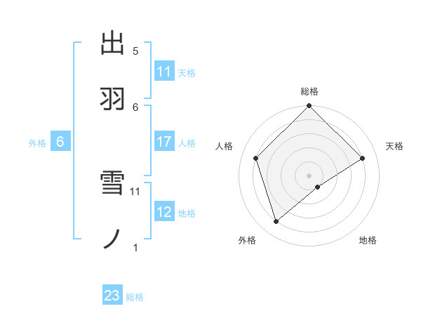 出羽 雪ノさんを姓名の画数から五運を鑑定