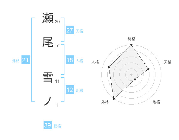 瀬尾 雪ノさんを姓名の画数から五運を鑑定