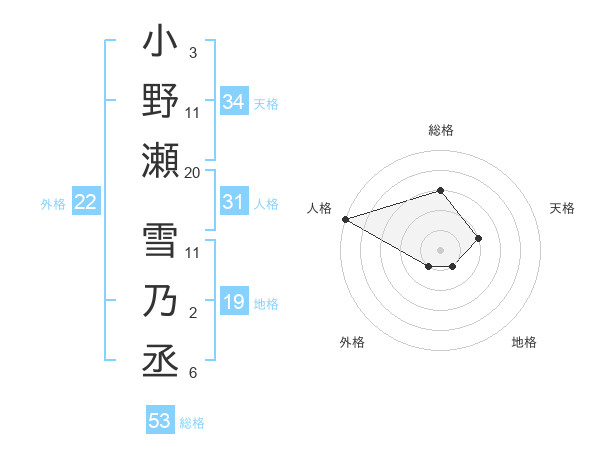 小野瀬 雪乃丞さんの総格は53画の3点!