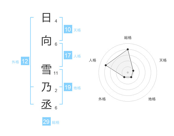 日向 雪乃丞さんを姓名の画数から五運を鑑定