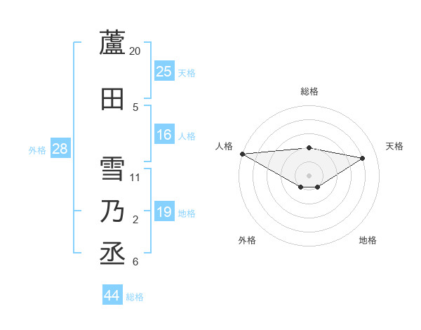 蘆田 雪乃丞さんの総格は44画の2点!