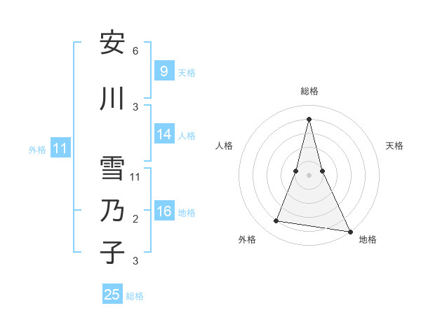 安川 雪乃子さんを姓名の画数から五運を鑑定