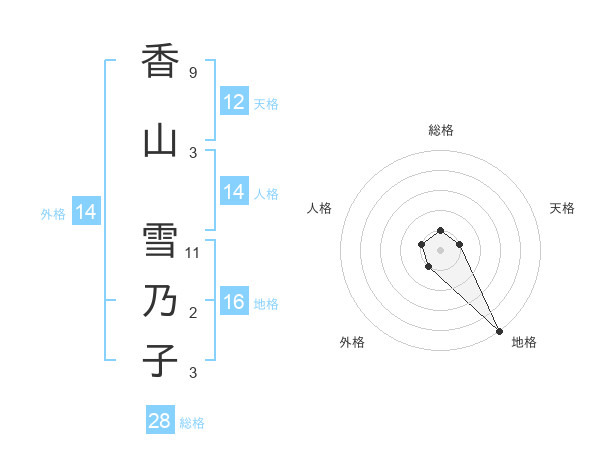 香山 雪乃子さんを姓名の画数から五運を鑑定