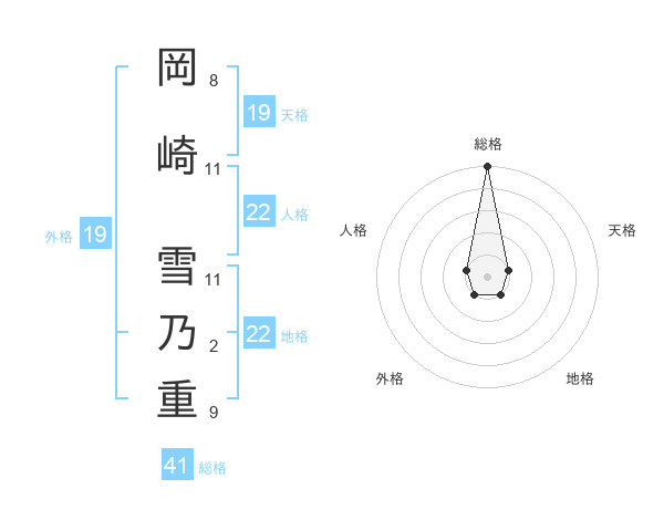 岡崎 雪乃重さんを姓名の画数から五運を鑑定