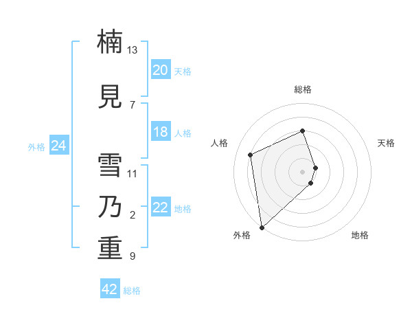 楠見 雪乃重さんを姓名の画数から五運を鑑定