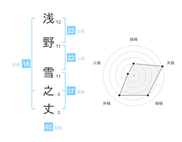 浅野 雪之丈さんを姓名の画数から五運を鑑定