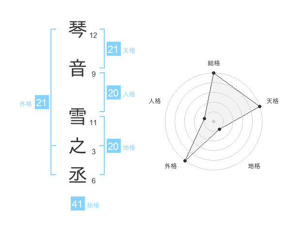 琴音 雪之丞さんの外格は21画の5点!