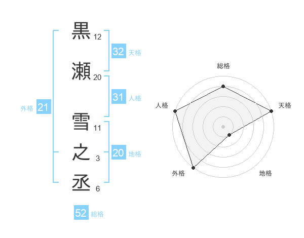 黒瀬 雪之丞さんを姓名の画数から五運を鑑定