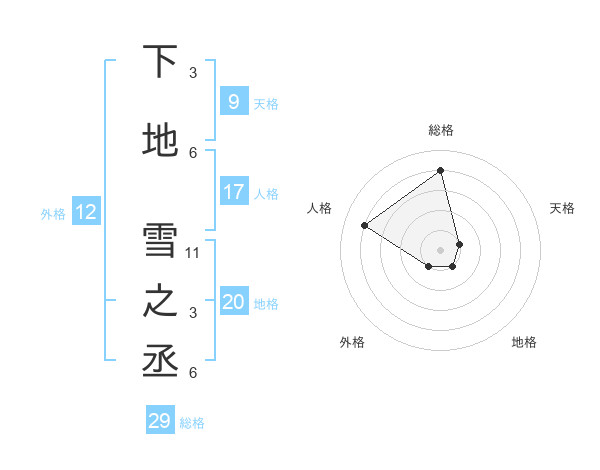 下地 雪之丞さんを姓名の画数から五運を鑑定