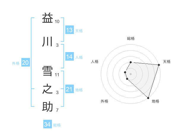 益川 雪之助さんの天格は13画の5点!