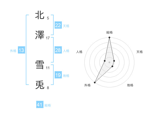 北澤 雪兎さんを姓名の画数から五運を鑑定