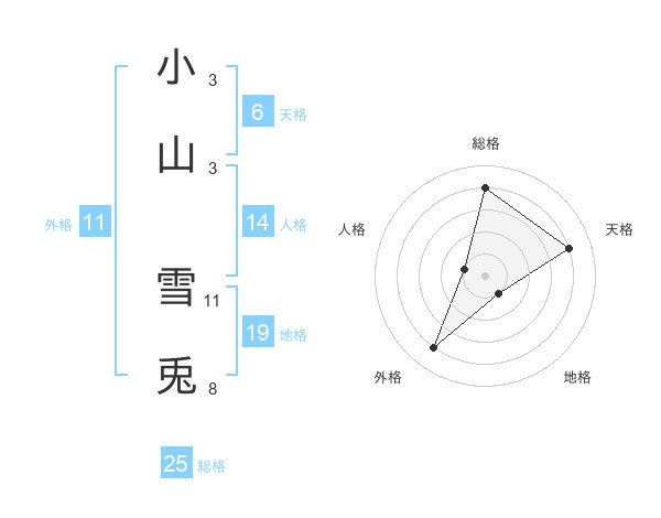 小山 雪兎さんを姓名の画数から五運を鑑定
