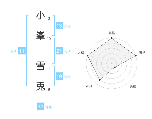 小峯 雪兎さんの総格は32画の5点!