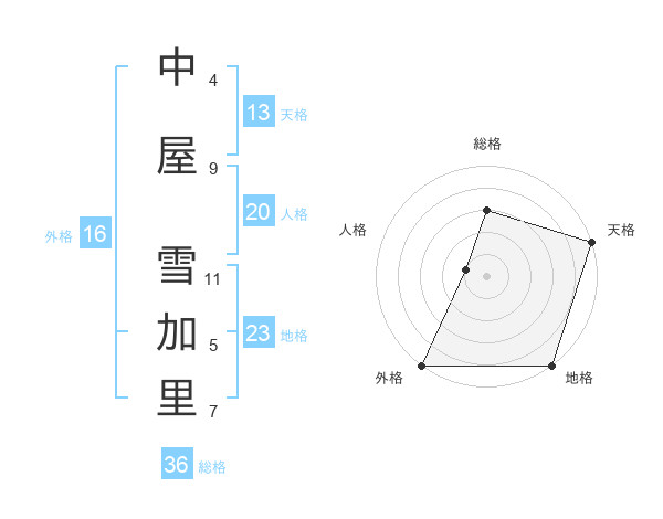 中屋 雪加里さんの外格は16画の5点!