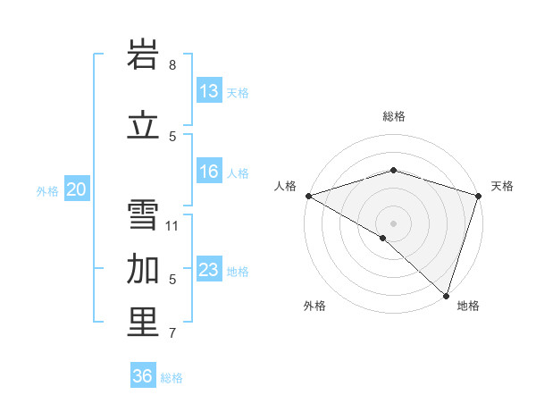 岩立 雪加里さんを姓名の画数から五運を鑑定