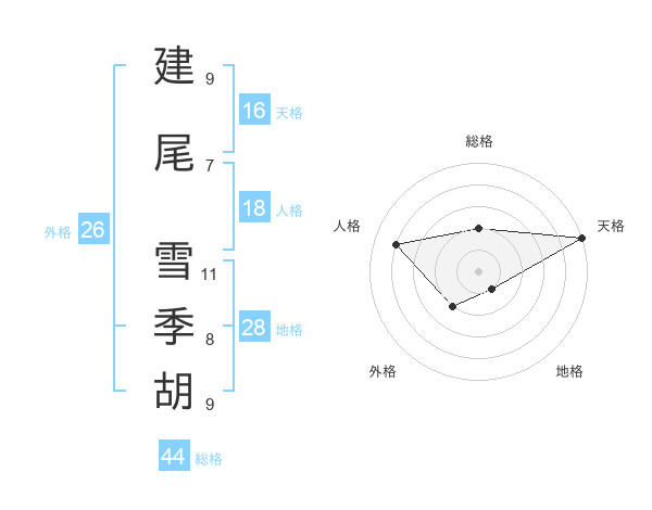 建尾 雪季胡さんを姓名の画数から五運を鑑定
